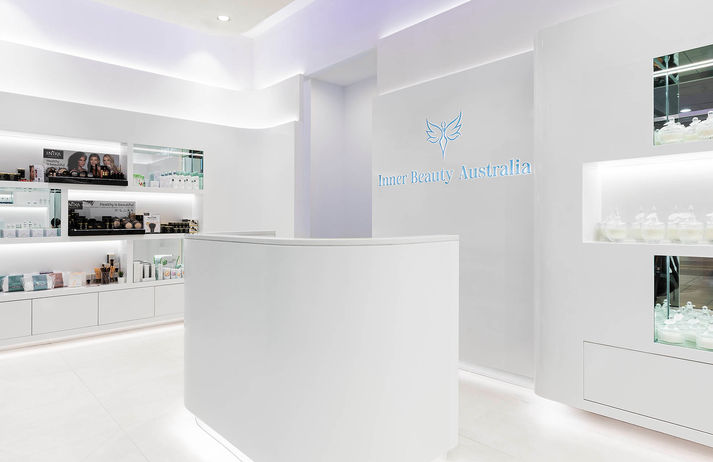 Eye-catching white design to give the clinic a high tech, clean feeling, joinery with curvature made with solid surface