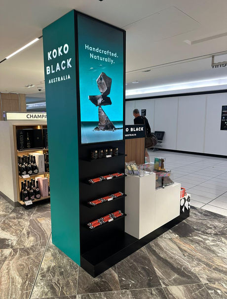 Koko Black uses a lot of vinyl wrapping to put colorful images on top of of the joinery, making the brand a young and festive vibe.